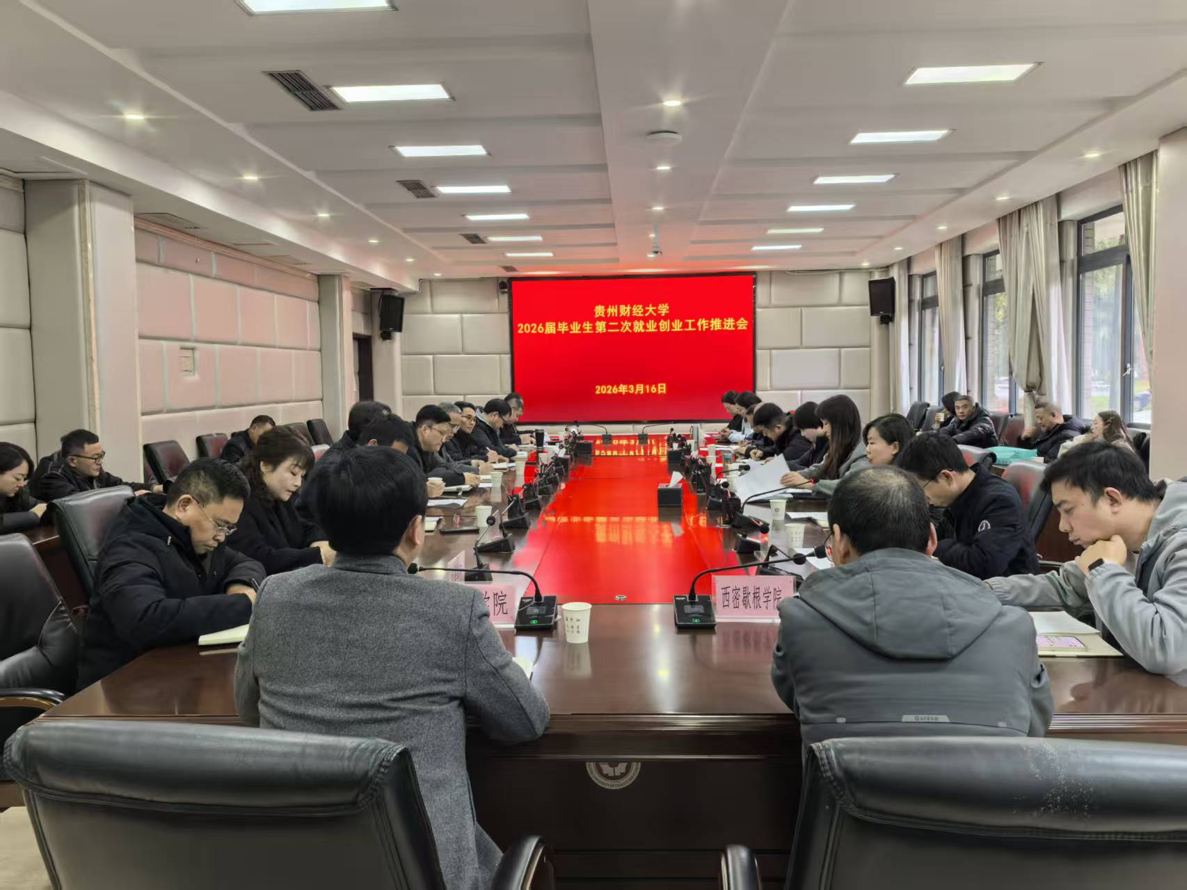 进一步夯实2026届毕业生就业工作基础,促进毕业生更充分更高质量就业,近日,我校在立德楼104会议室召开2026届毕业生第二次暨新学期首次就业创业工作推进会。副校长、党委常委徐艺出席会议并做总结发言,学生工作部、校团委、招生就业处负责人,各学院党委书记、分管就业工作党委副书记参加会议。会议由招生就业处处长王茜主持。