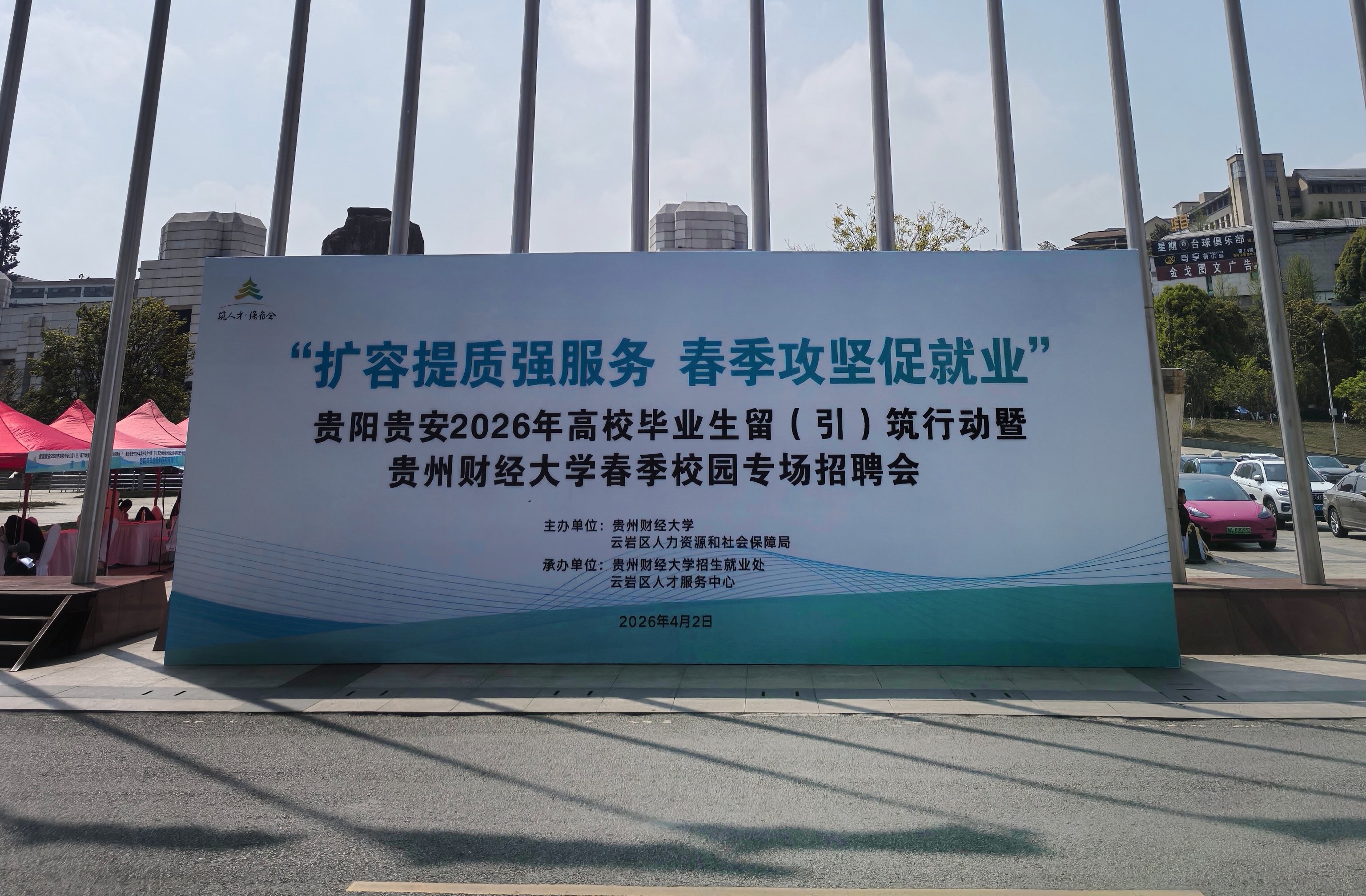 为深入贯彻落实国家及我省关于高校毕业生就业创业工作的决策部署,全力抢抓春季促就业关键窗口期,扎实推进“春季促就业攻坚行动”,我校于4月2日联合云岩区人力资源和社会保障局,在西区正德楼前广场顺利举办“贵阳贵安2026年高校毕业生留(引)筑行动暨贵州财经大学春季校园专场招聘会”,这是春季攻坚促就业系列活动的第四场,旨在持续夯实校园招聘主渠道,为毕业生与用人单位搭建精准、高效的对接平台。